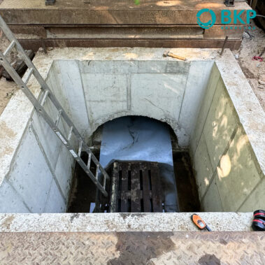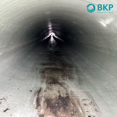 The network of stormwater sewers in Berlin measures 3,324 kilometers. In Baumschulenstraße in the Treptow-Köpenick district, some of these kilometers from all directions come together in the form of smaller sewers and flow into a final section before the Spree – with a mouth profile and a diameter of 1,546 by 900 millimeters. Even before the BKP hose liners were installed, Stehmeyer + Bischoff built new manholes and manhole connections and carried out bed profiling of the pipe. The liners were intended to ensure improved statics and hydraulics of the sewer.