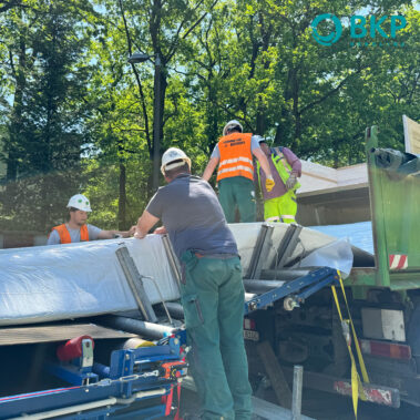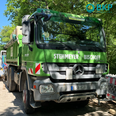 A lot of patience was also required from the construction site employees when maneuvering. Although the construction site was in an area with no through traffic, many cyclists and pedestrians still squeezed through the dead end to get to the Plänterwald or to the ferry terminal that leads to the opposite side of the Spree. Buses from the Berliner Verkehrsgesellschaft (BVG) joined in every five minutes to turn around in a loop directly in front of the Spree. Vehicles had to be moved and processes changed again and again.